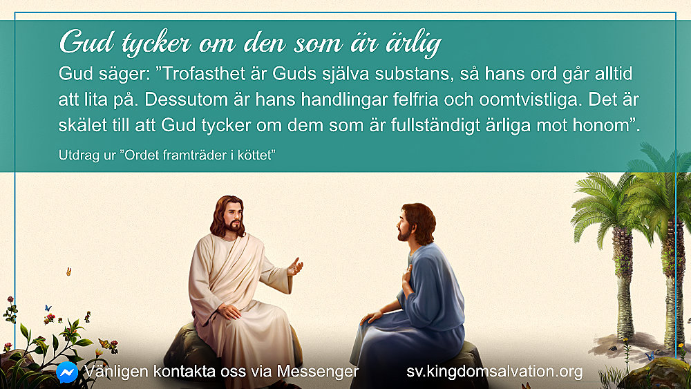 Gud säger: "Trofasthet är Guds själva substans, så hans ord går alltid att lita på. Dessutom är hans handlingar felfria och oomtvistliga. Det är skälet till att Gud tycker om dem som är fullständigt ärliga mot honom."